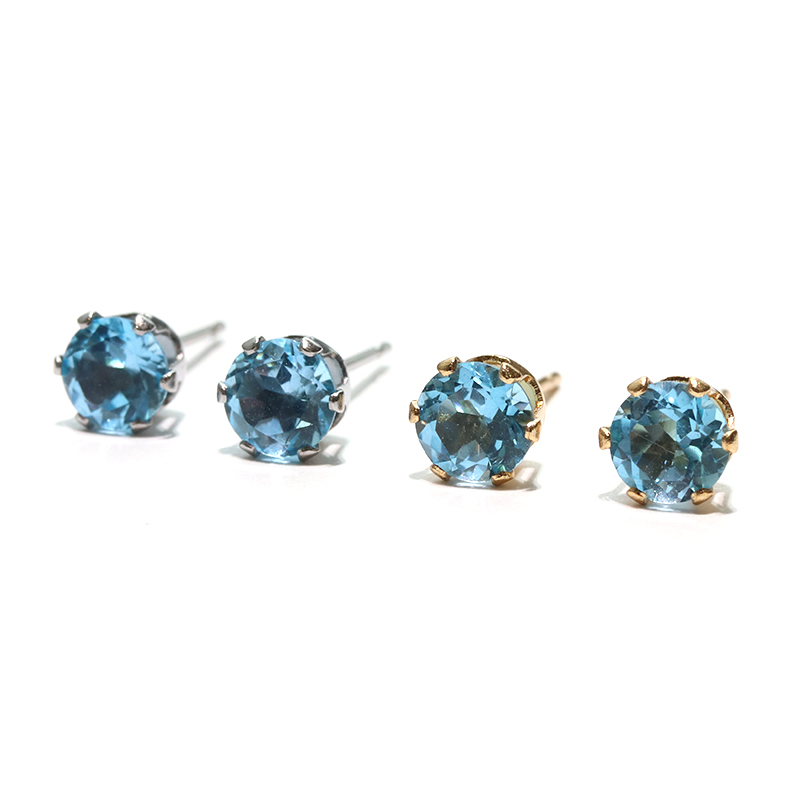 ピアス スイスブルートパーズ 約5mm 突き刺し型 ステンレス シルバー 日本製 仕事運 成長 ヒーリング パワーストーン 天然石 品番:17721