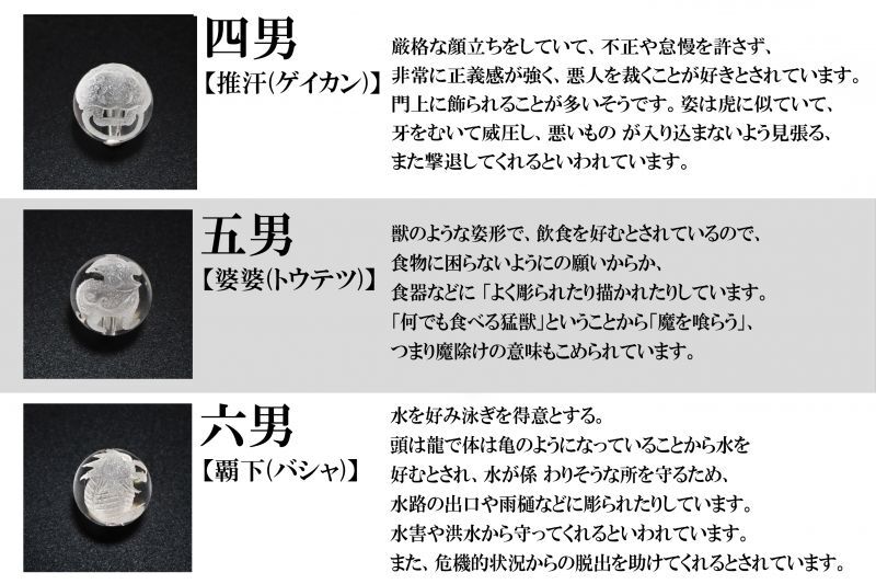 カービング 彫刻ビーズ 龍生九子 水晶 素彫り 丸 10mm 9種セット 風水 強運 運気 お守り 品番: 2851