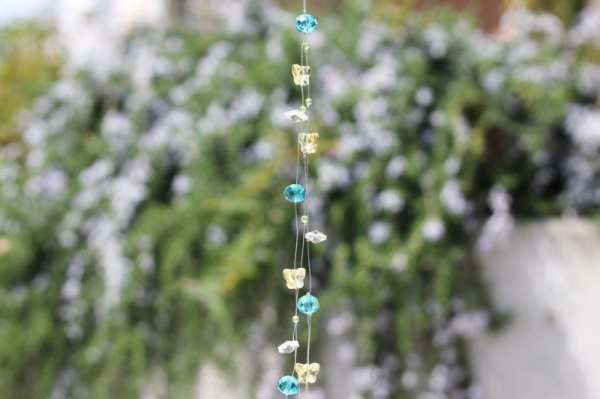 海に光る裸海蝶(クリオネ)をイメージしたさわやかな色合いのサンキャッチャーです。