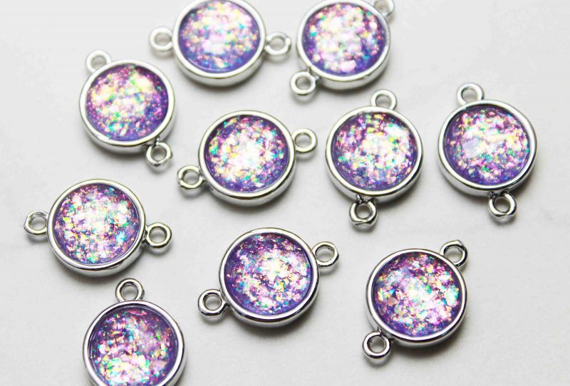 光の角度によってきらきらと輝く合成オパールのコネクトパーツです。